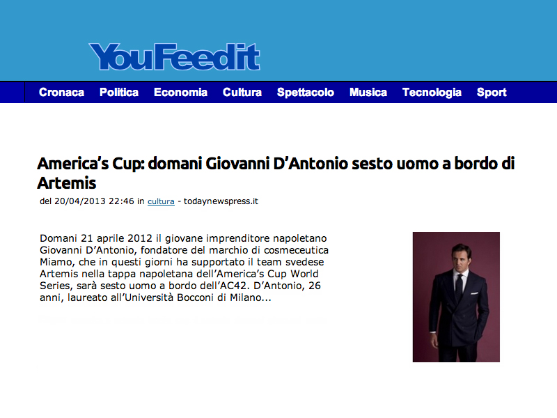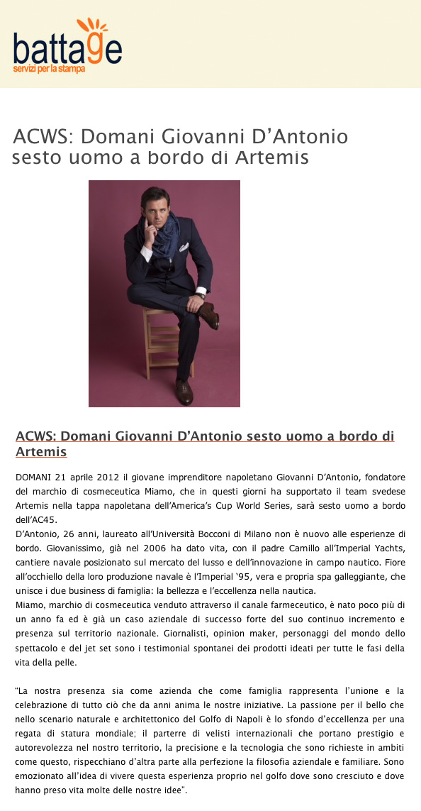 American’s Cup: domani Giovanni D’Antonio sesto uomo a bordo di Artemis
