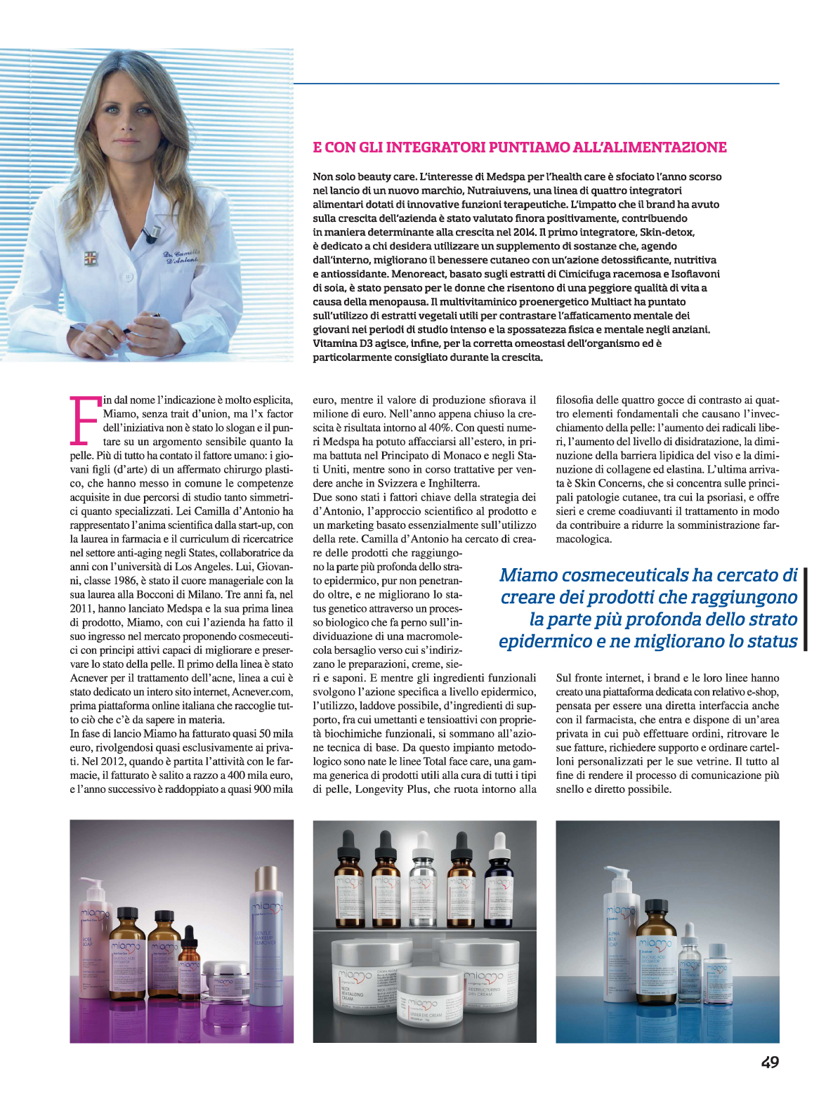 MEDSPA PUNTA ALLA COSMECEUTICA D’AVANGUARDIA. L’intervista con Marketing Media and Money
